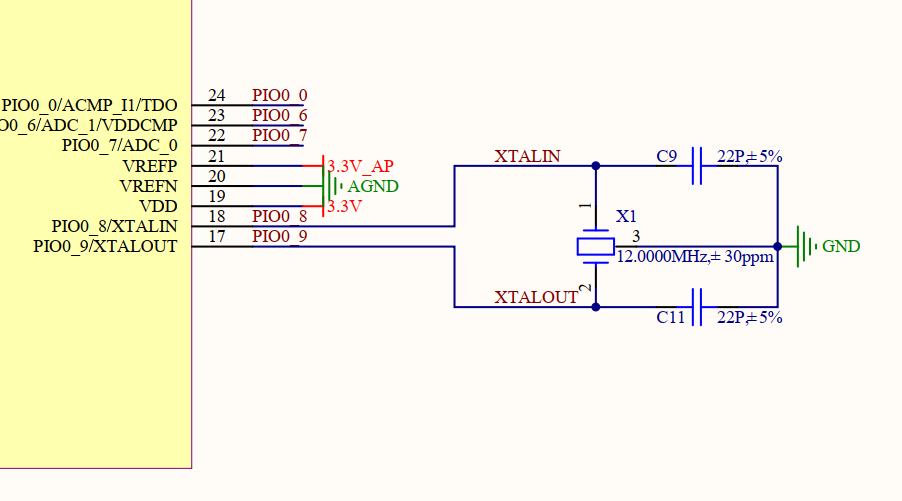此原理图中使用晶振连接到XTALIN引脚和XTALOUT引脚,给单片机提供时钟频率,下面就来详细分析一下这种电路的工作原理。