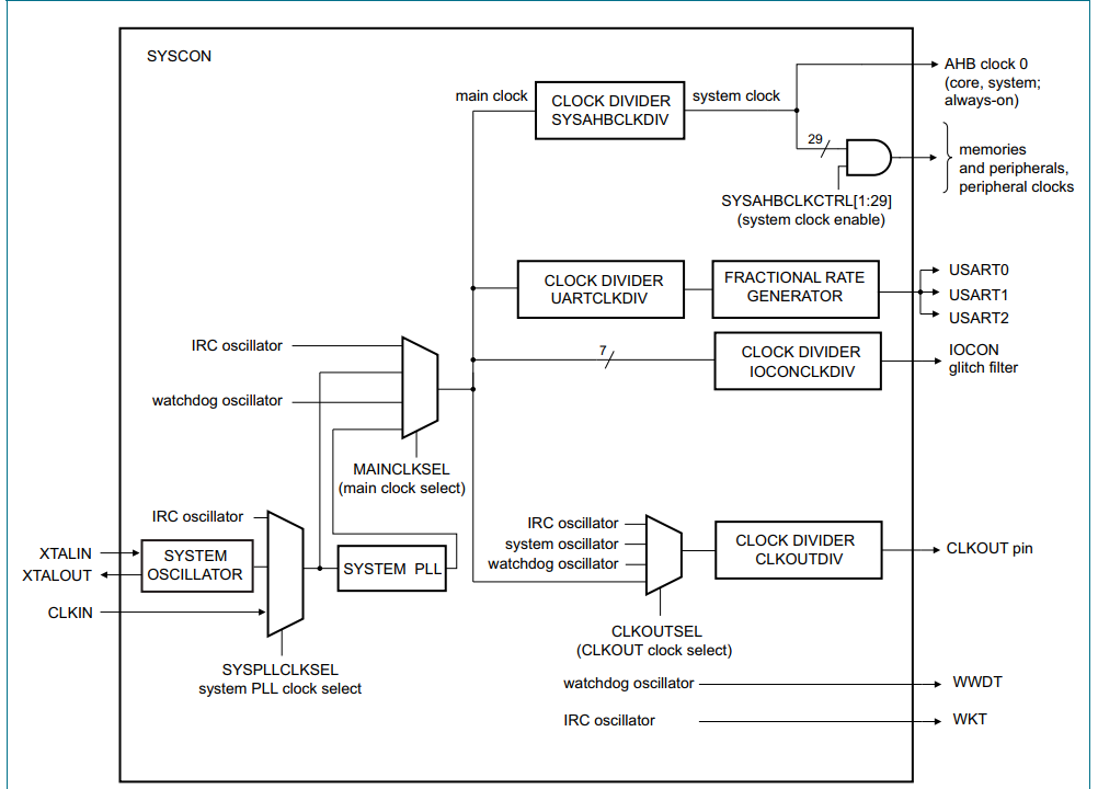 LPC_SYSCON->CLKOUTSEL = 3; /* CLKOUT源选择:MAINCLK */