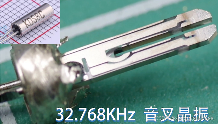 特殊的晶振——32.768Khz,从上图可以看出,AT切的20Mhz晶振的切片很薄,只有0.083mm,但是频率降低到32.768Khz,如果还是AT切,那么厚度就是0.083mm*20Mhz/32.768Khz=50.66mm。