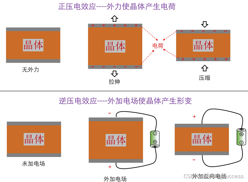 首先,晶体谐振器里面的晶体指的是石英晶体,化学式是二氧化硅SiO2。石英的特点是:热膨胀系数小、Q值高、绝缘等。石英可以做成晶体谐振器,主要是利用了压电效应。压电效应又分为正压电效应和逆压电效应,以下是百度百科对其的定义: