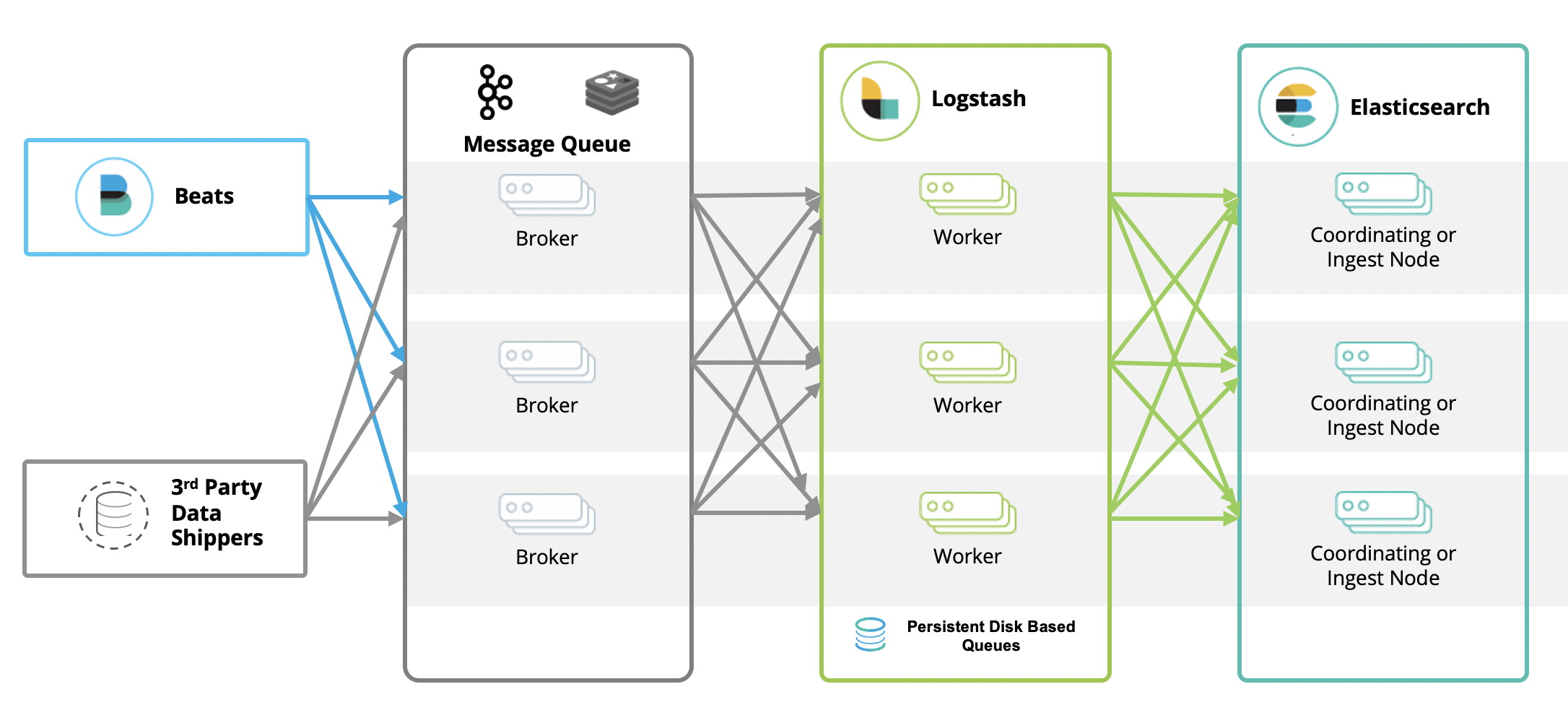 大家可以看到,我们在这里建议的是大多数情况下,我们应该选择Beats->Elasticsearch这一简单的架构。其原因就像我们之前提到的: