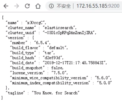 #创建elsearch用户,Elasticsearch不支持root用户运行 useradd elsearch #权限问题,建议不要用root用户传. #解压安装包 到当前目录的 /data/es目录下 tar -xvf elasticsearch-6.5.4.tar.gz -C /data/es/ #修改配置文件 vim conf/elasticsearch.yml network.host: 172.16.55.185 #绑定的地址 #说明:在Elasticsearch中如果,network.host不是localhost或者127.0.0.1的话,就会认为是生产环 境,会对环境的要求比较高,我们的开发环境不一定能够满足,一般情况下需要修改2处配置,如下: #1:修改jvm启动参数 默认1G vim conf/jvm.options -Xms128m #根据自己机器情况修改 -Xmx128m #2:单个进程中的最大线程数 vim /etc/sysctl.conf vm.max_map_count=655360 #启动ES服务 su - elsearch cd bin ./elasticsearch 或 ./elasticsearch -d #后台系统 #通过访问http://172.16.55.185:9200进行测试,看到如下信息,就说明ES启动成功了 { "name": "dSQV6I8", "cluster_name": "elasticsearch", "cluster_uuid": "v5GPTWAtT5emxFdjigFg-w", "version": { "number": "6.5.4", "build_flavor": "default", "build_type": "tar", "build_hash": "d2ef93d", "build_date": "2018-12-17T21:17:40.758843Z", "build_snapshot": false, "lucene_version": "7.5.0", "minimum_wire_compatibility_version": "5.6.0", "minimum_index_compatibility_version": "5.0.0" }, "tagline": "You Know, for Search" } #停止: 输入 jps 查看进程端口号 68709 Jps 68072 Elasticsearch 然后使用kill 68072 结束进程 -