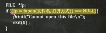打开文件: fp=fopen(文件 名打开方式);关闭文件: fclose(fp);