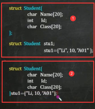 例子:(两种定义结构体变量的格式)