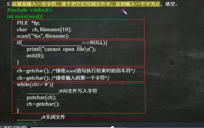 提示:fputc(ch, fp)把字符ch写到fp指向的文件中。