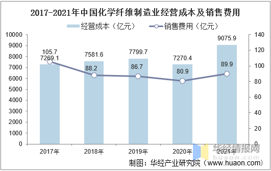 2017-2021年中国化学纤维制造业经营成本及销售费用