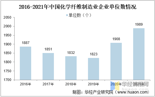 近年来,随着我国化学纤维行业产业结构的调整,落后产能的淘汰,2016-2019年期间,我国法学纤维制造业企业数逐年减少,2020年我国化学纤维制造业企业数首次迎来回升。据资料显示,2021年我国化学纤维制造业企业单位数为1989个,较2020年增加81个。