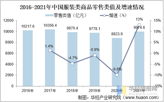 服装行业是我国化学纤维主要的需求领域,随着我国服装行业的不断发展,服装行业的规模不断增长,庞大的消费需求带动了我国化学纤维行业的发展。据资料显示,2021年我国服装类商品零售类值为9974.6亿元,同比增长13%。