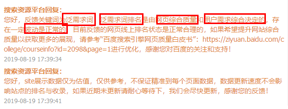于是百度站长后台进行了反馈,回复的结果如下: