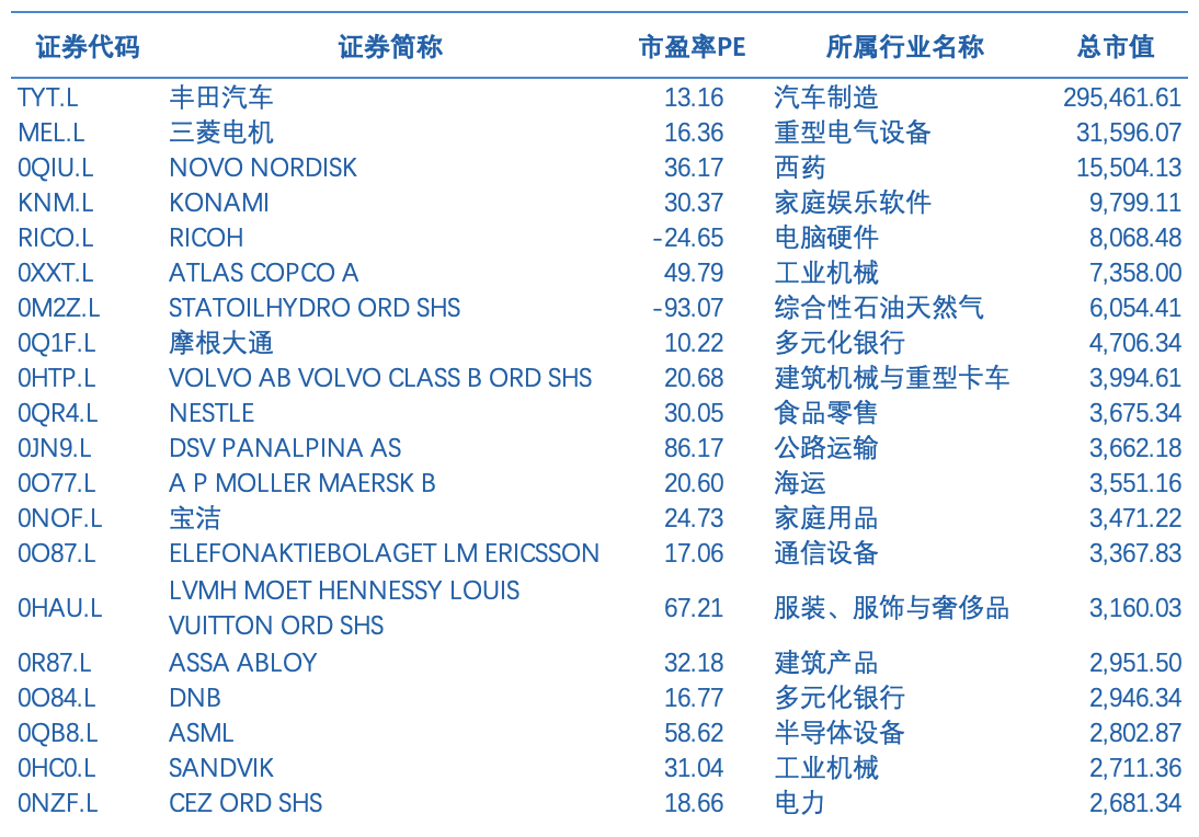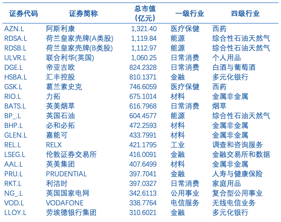 表 英国富时100指数主要上市企业