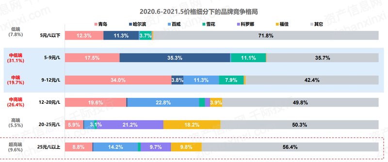价格带的拉长给企业带来了腾挪的空间,啤酒行业向上的追求成为主流。行业竞争从地面战转为制空权争夺的空战,也就是说未来哪个企业占据消费者的高端需求,就会在这场空战中占据主动。