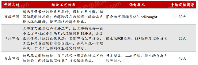 青啤传承德式酿造传统,采用独特的“两段法低温慢熟”工艺,整个酿造过程需要 40 天。青啤酿造工序及技术构成其核心竞争力之一,是青岛啤酒得以在国内众多啤酒厂商中脱颖而出的关键因素。