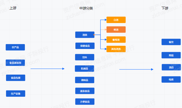 啤酒酿造产业链可以分为上游、中游、下游三部分。