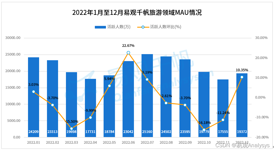 图1 2022年1月至12月易观千帆旅游领域MAU情况