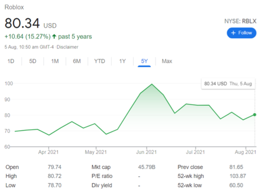 Roblox股价走势