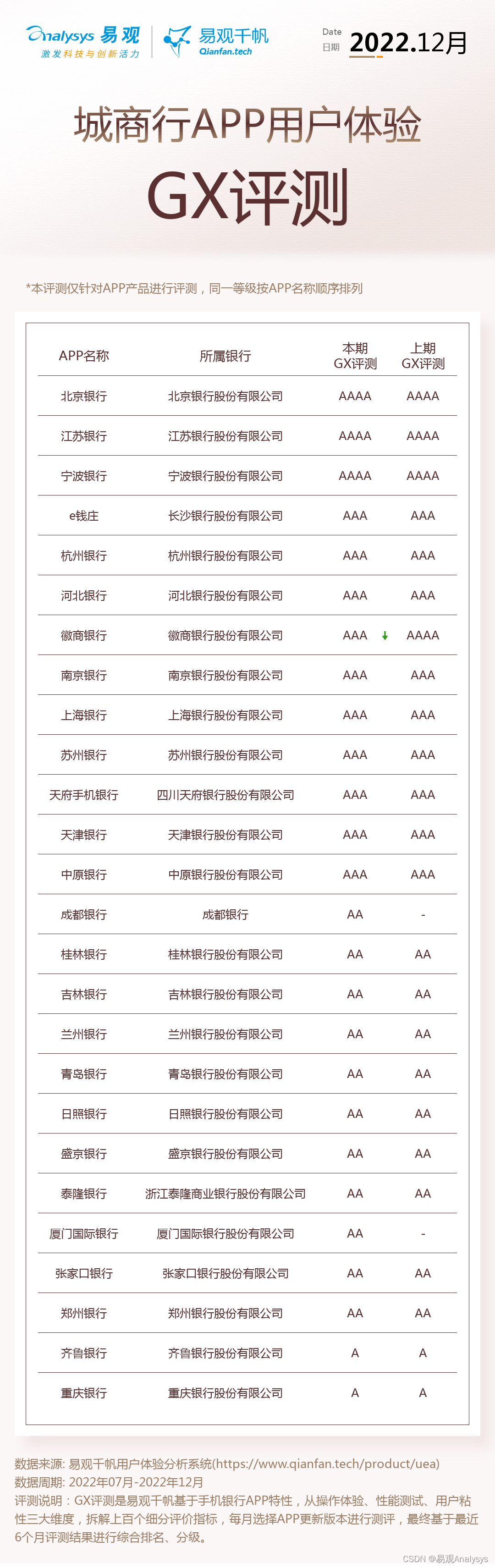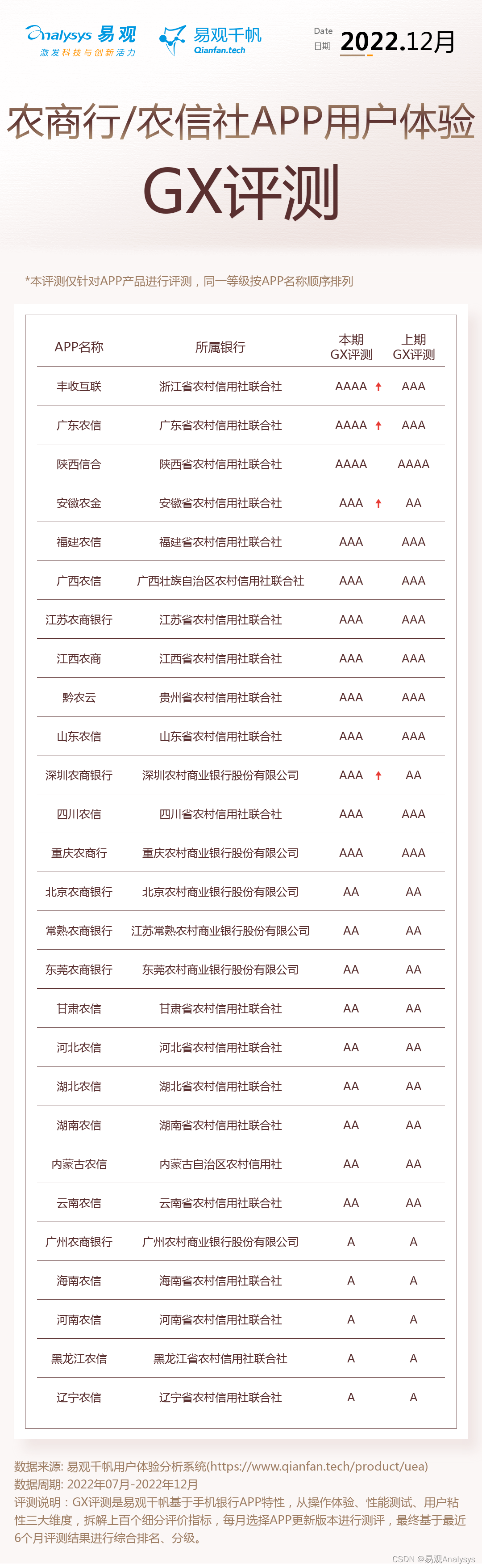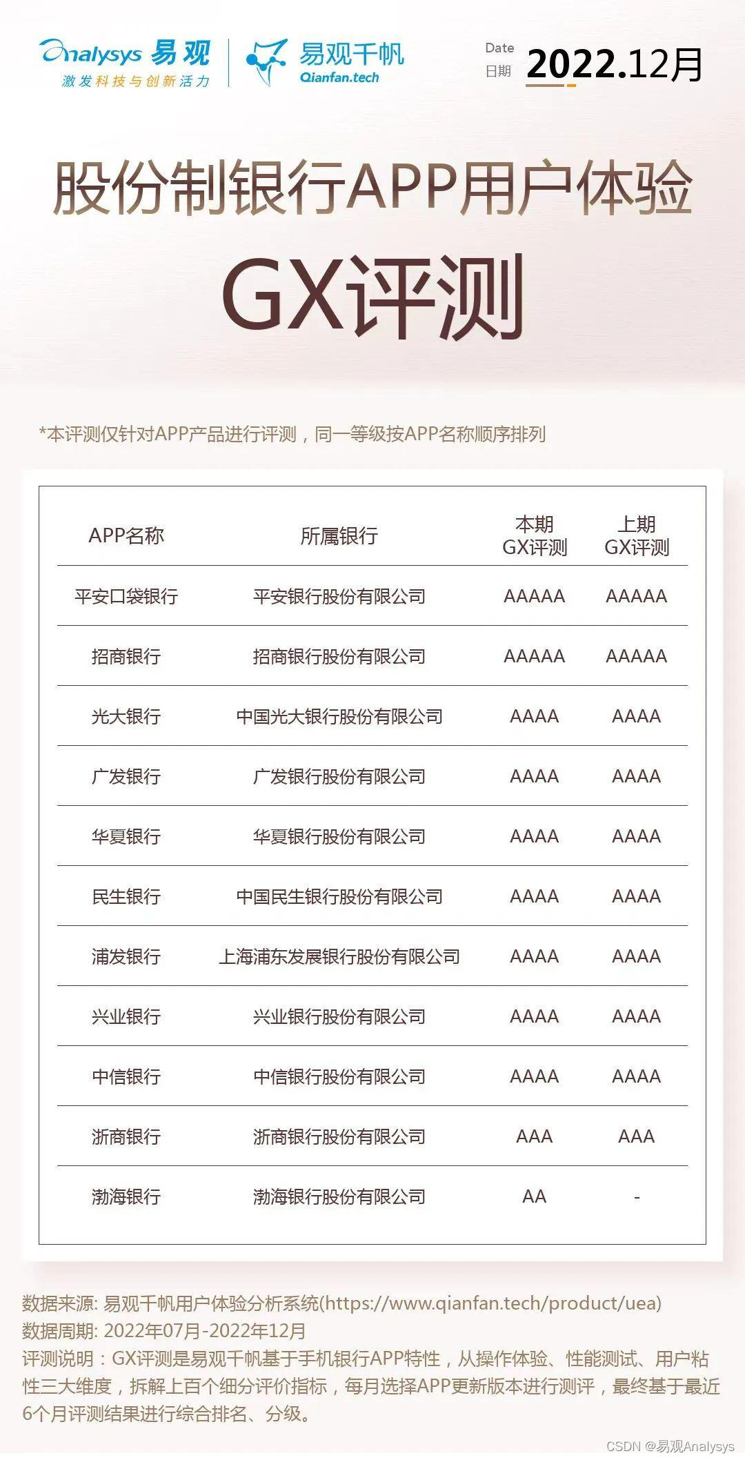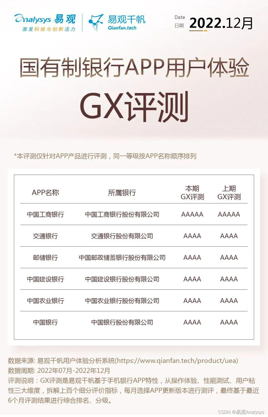 以上就是醉熏自行车最近收集整理的关于易观千帆 | 12月用户体验GX评测:国有行及股份行持续领跑,农信社用户体验关注提升的全部内容,更多相关易观千帆内容请搜索靠谱客的其他文章。