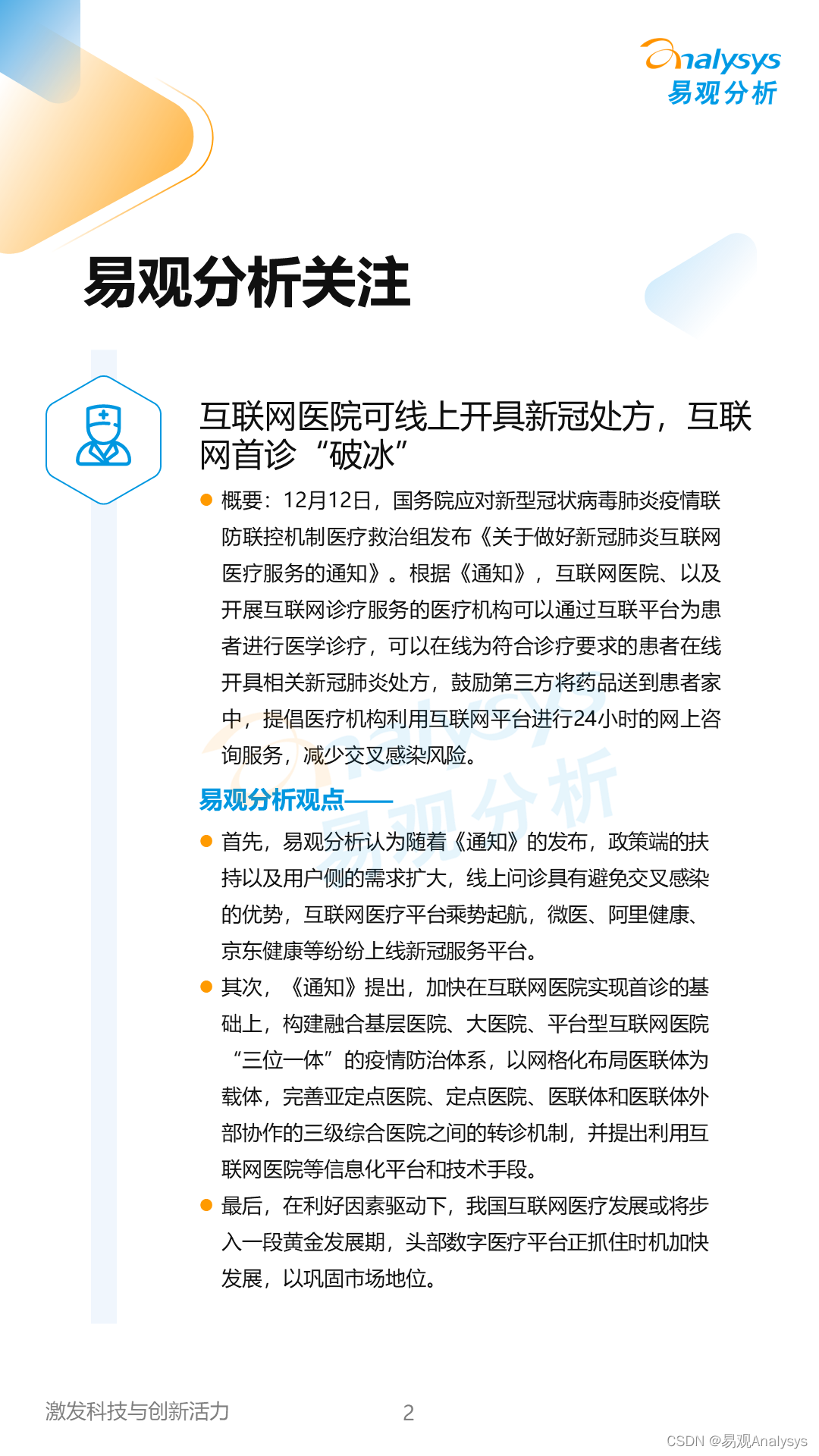 以上就是老实刺猬最近收集整理的关于互联网医疗领域月度观察——互联网医院可线上开具新冠处方,互联网首诊“破冰”的全部内容,更多相关互联网医疗领域月度观察——互联网医院可线上开具新冠处方内容请搜索靠谱客的其他文章。