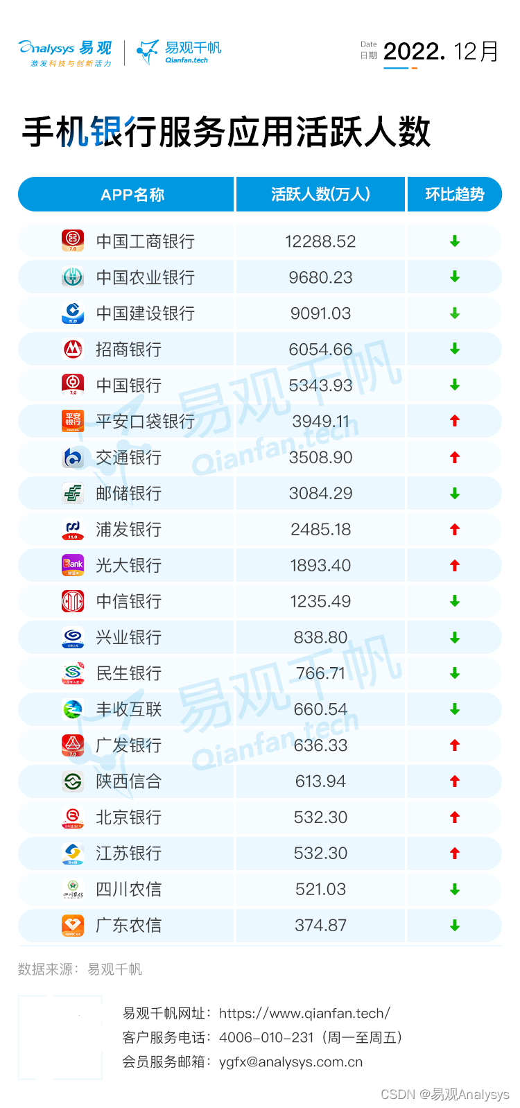 以上就是高挑吐司最近收集整理的关于易观千帆 | 2022年12月银行APP月活跃用户规模盘点的全部内容,更多相关易观千帆内容请搜索靠谱客的其他文章。