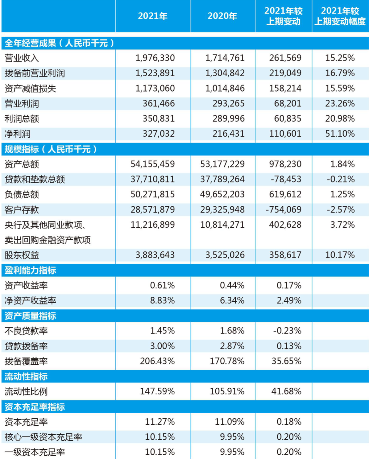 截至2021年末,重庆富民银行的资本充足率为11.27%,较2020年末增长0.18个百分点;不良贷款率1.45%,较2020年末的1.68%下降0.23个百分点;拨备覆盖率为206.43%,2020年同期为170.78%。