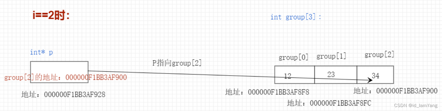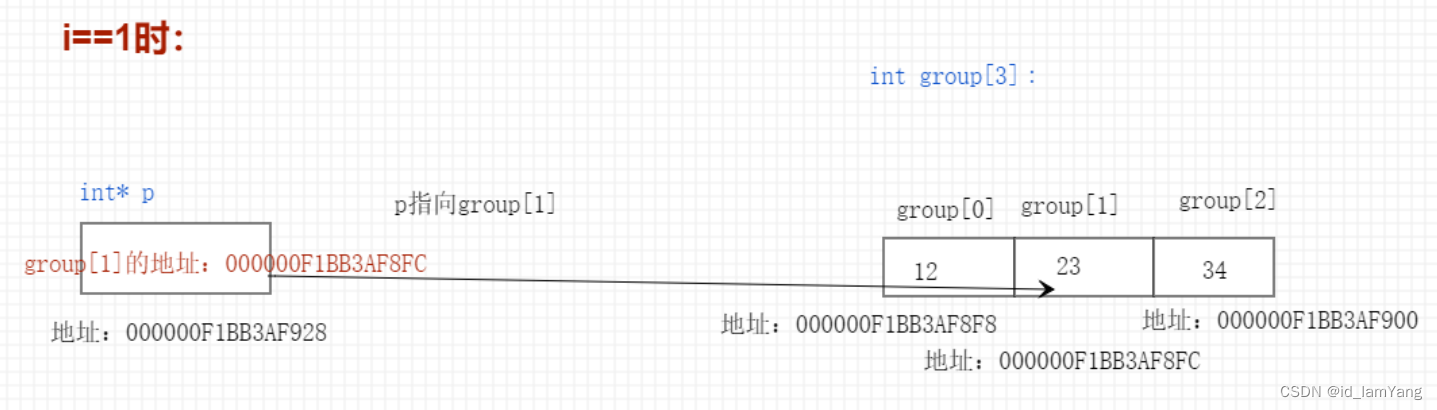 可以看到:group[i]==*p ;&group[i]==p ;&p一直没有变