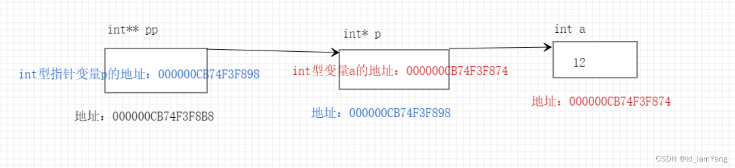 **pp:第一个‘*’是 *pp,是根据pp存储的指针变量(p)的地址来访问该指针变量(p),并返回该指针变量(p)的地址上存储的地址(a的地址);第二个‘*’是 *(*pp)相当于 *(p),即根据p存储的变量(a)的地址来访问该变量(a),并返回该变量地址上存储的数据(12)