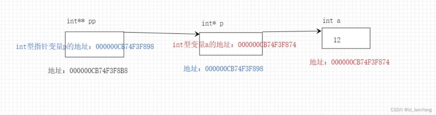 int** pp=&p; //pp是指向int型指针的指针变量,所以pp是指针p的指针,pp指向p的地址(int型指针的指针pp存储p的地址)