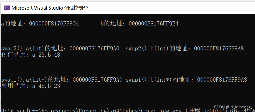 printf("nswap2().a(int)的地址:%ptswap2().b(int)的地址:%pt", &a, &b);