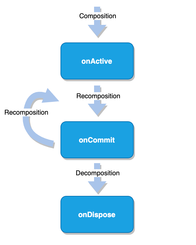 副作用必须在合适的时机执行,首先需要明确一个Composable的生命周期: