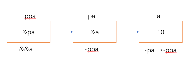 int** ppa = &pa;//pa的地址存在ppa中,ppa是二级指针