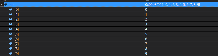 int arr[] = { 1,5,8,9,0,2,3,7,4,6 };