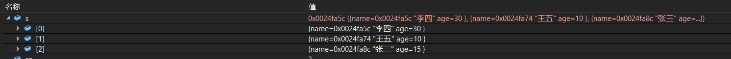 struct Stu s[3] = { {"张三",15},{"李四",30},{"王五",10} };