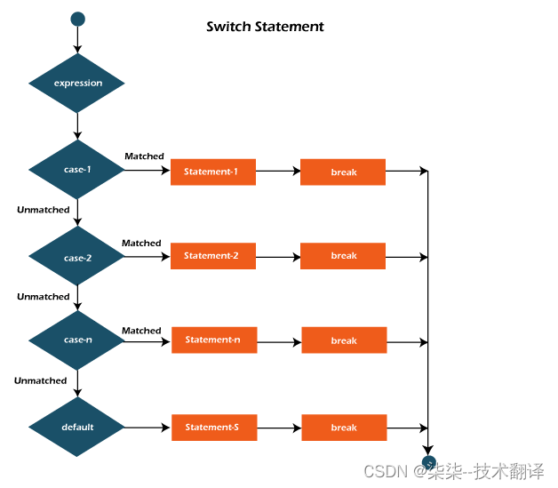 - 每个 case 语句都可以有一个可选的 break 语句。 当控制到达 break 语句时它在 switch 表达式之后跳转控件。 如果没有找到 break 语句,则执行下一个 case。