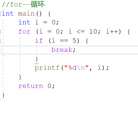 当i == 5,break会跳出这个程序,不在继续走完下面的代码,直接终止。