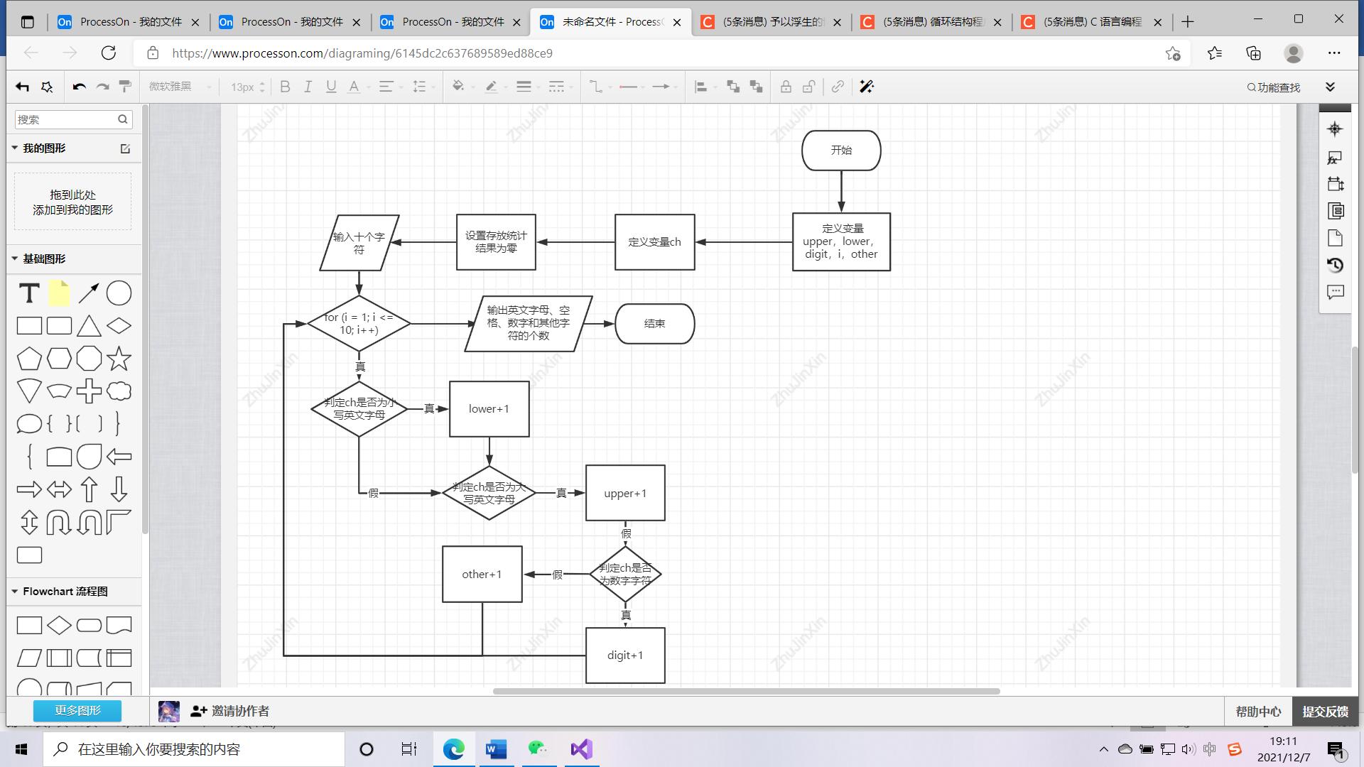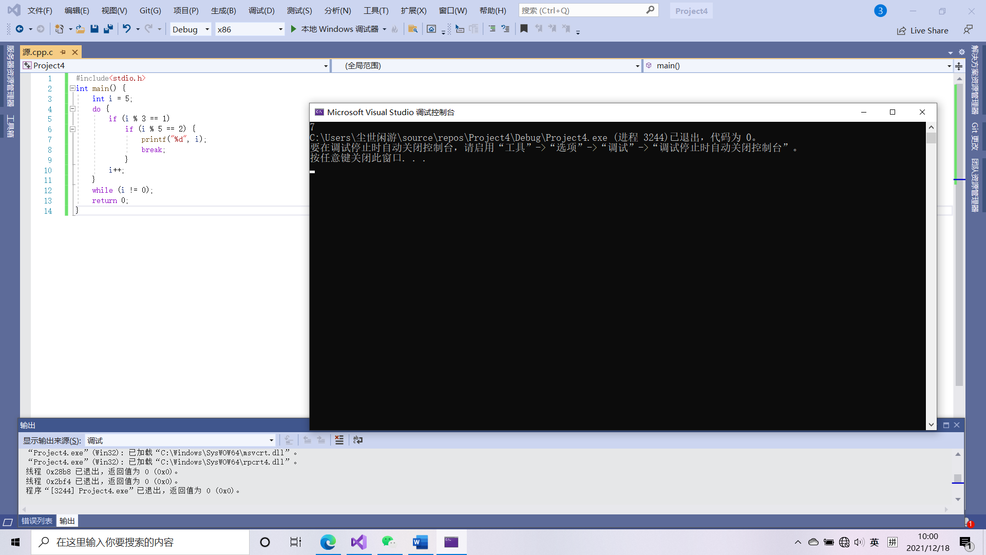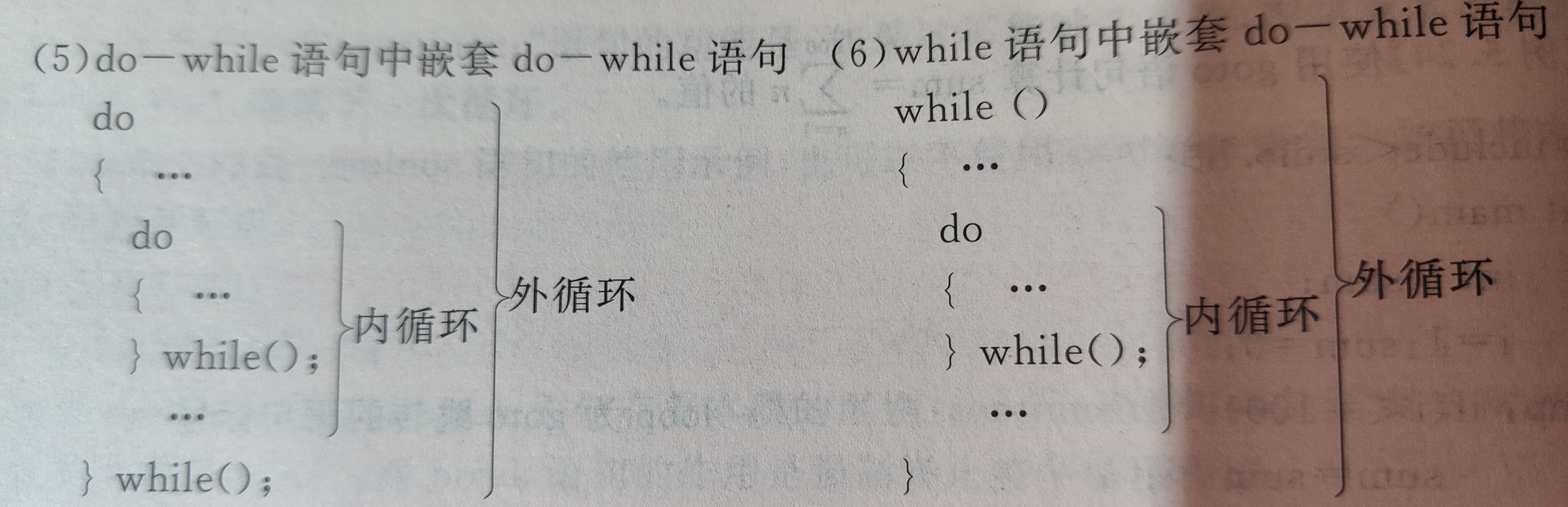 2.判断表达式2,若其值为真(非0),则执行循环体语句,然后执行第3步;若值为假(0),结束循环,转到第5步执行。