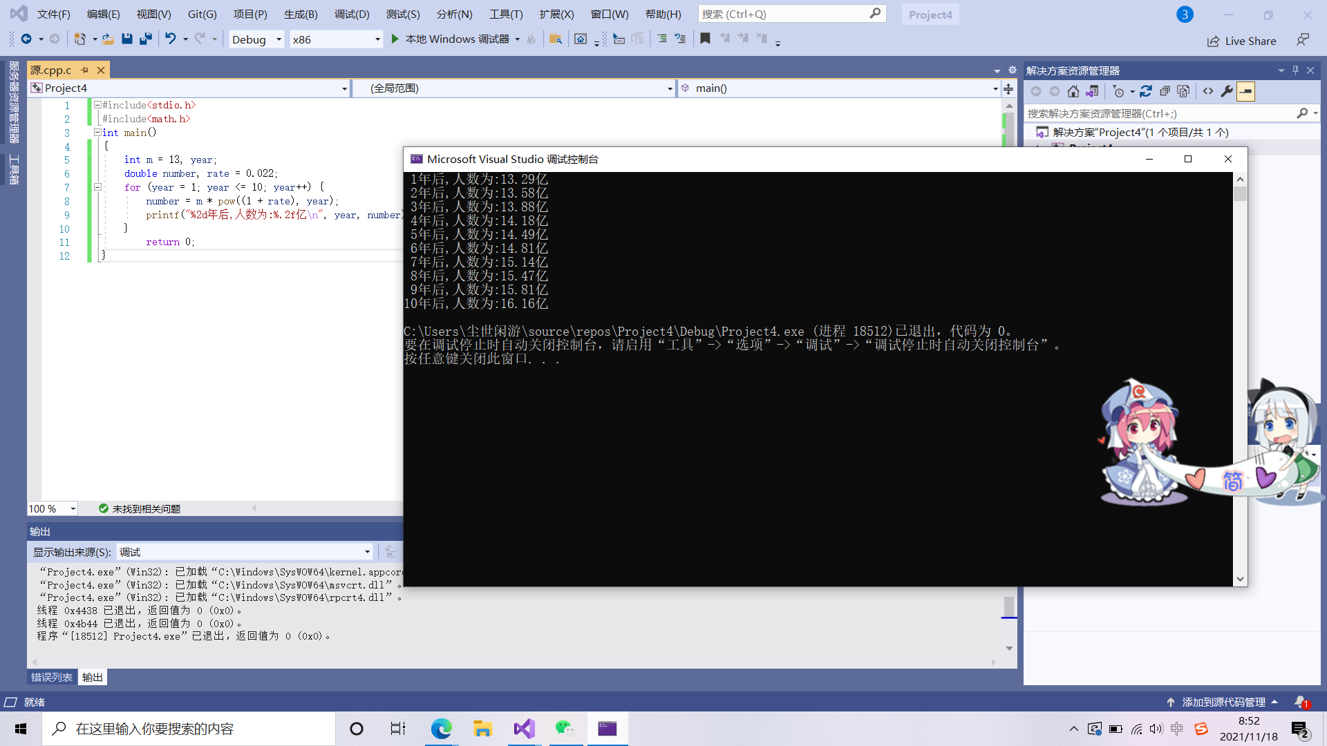 printf("%2d年后,人数为:%.2f亿n", year, number);