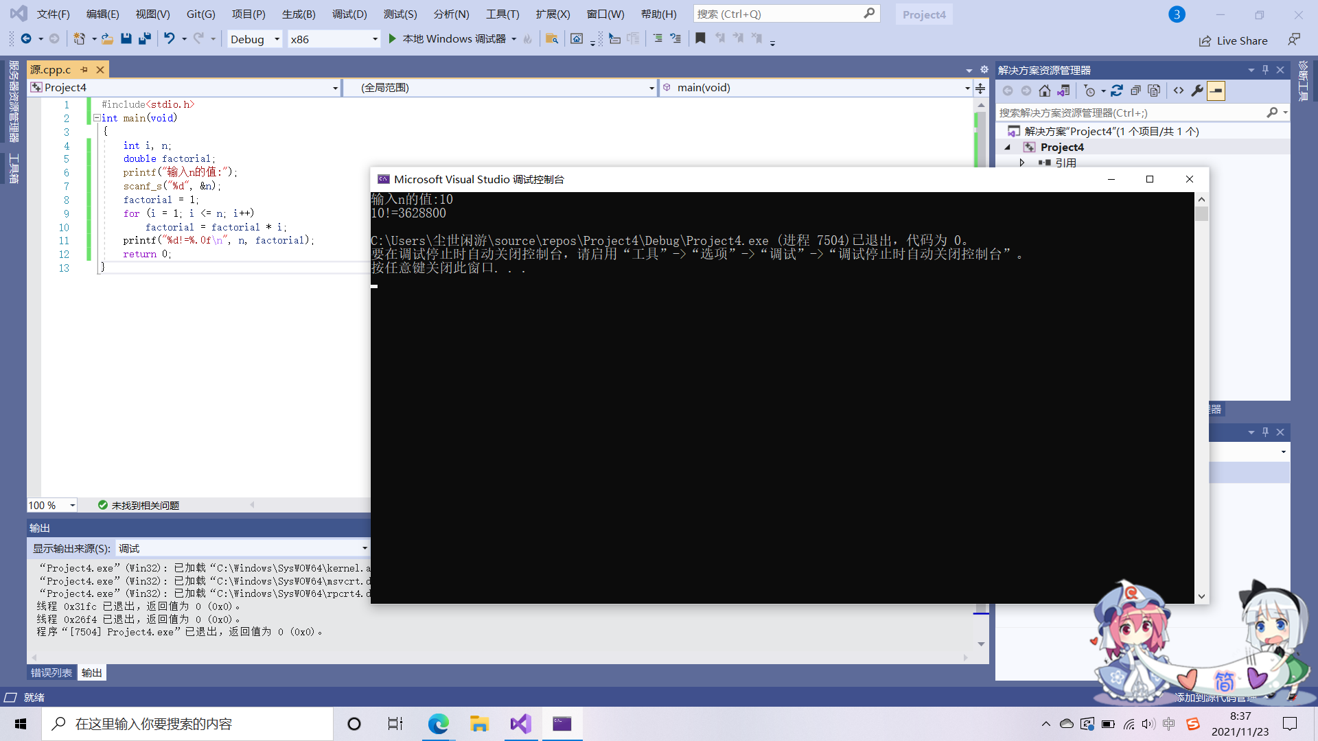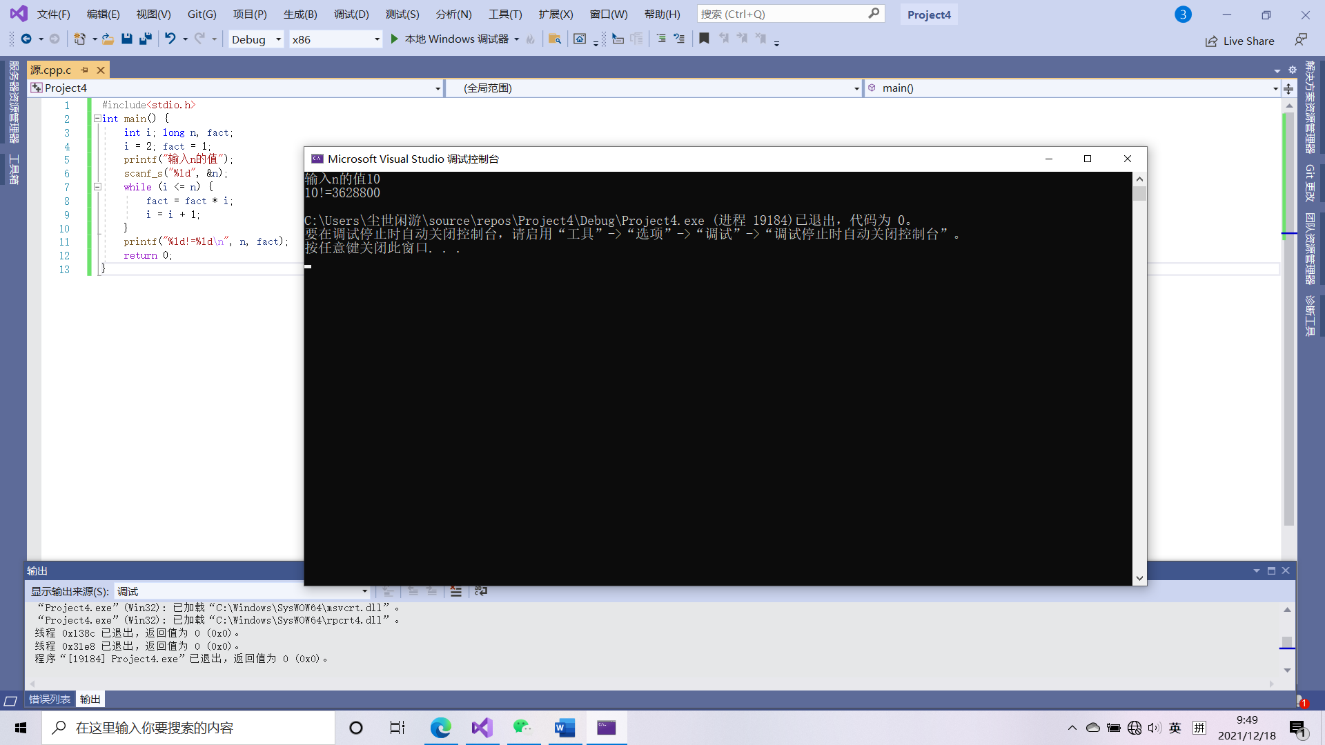 输入一个正整数n,求n!