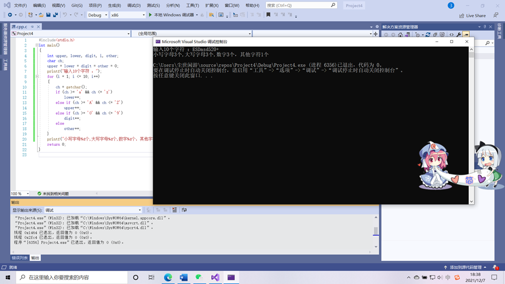 printf("男:%d,女:%d,小孩:%dn", men, women, child);