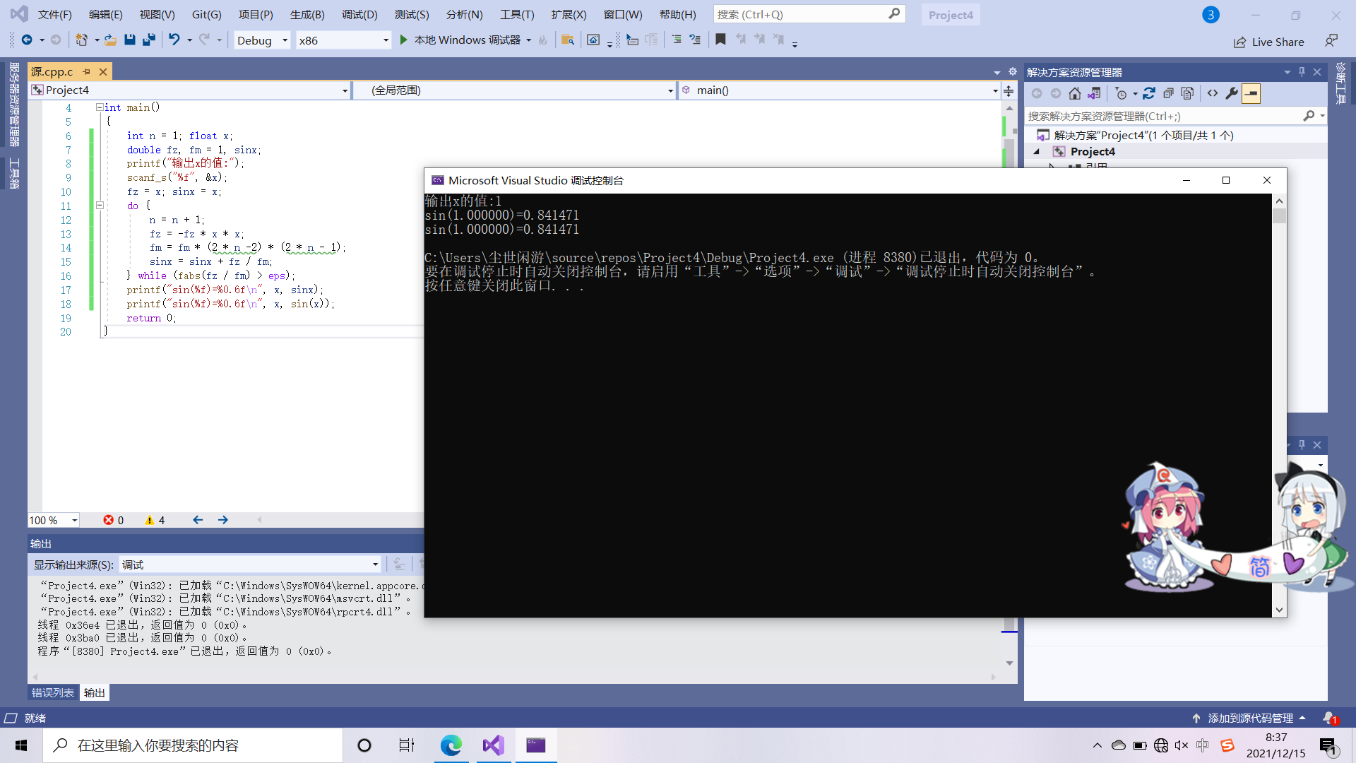 printf("输入x的值:");