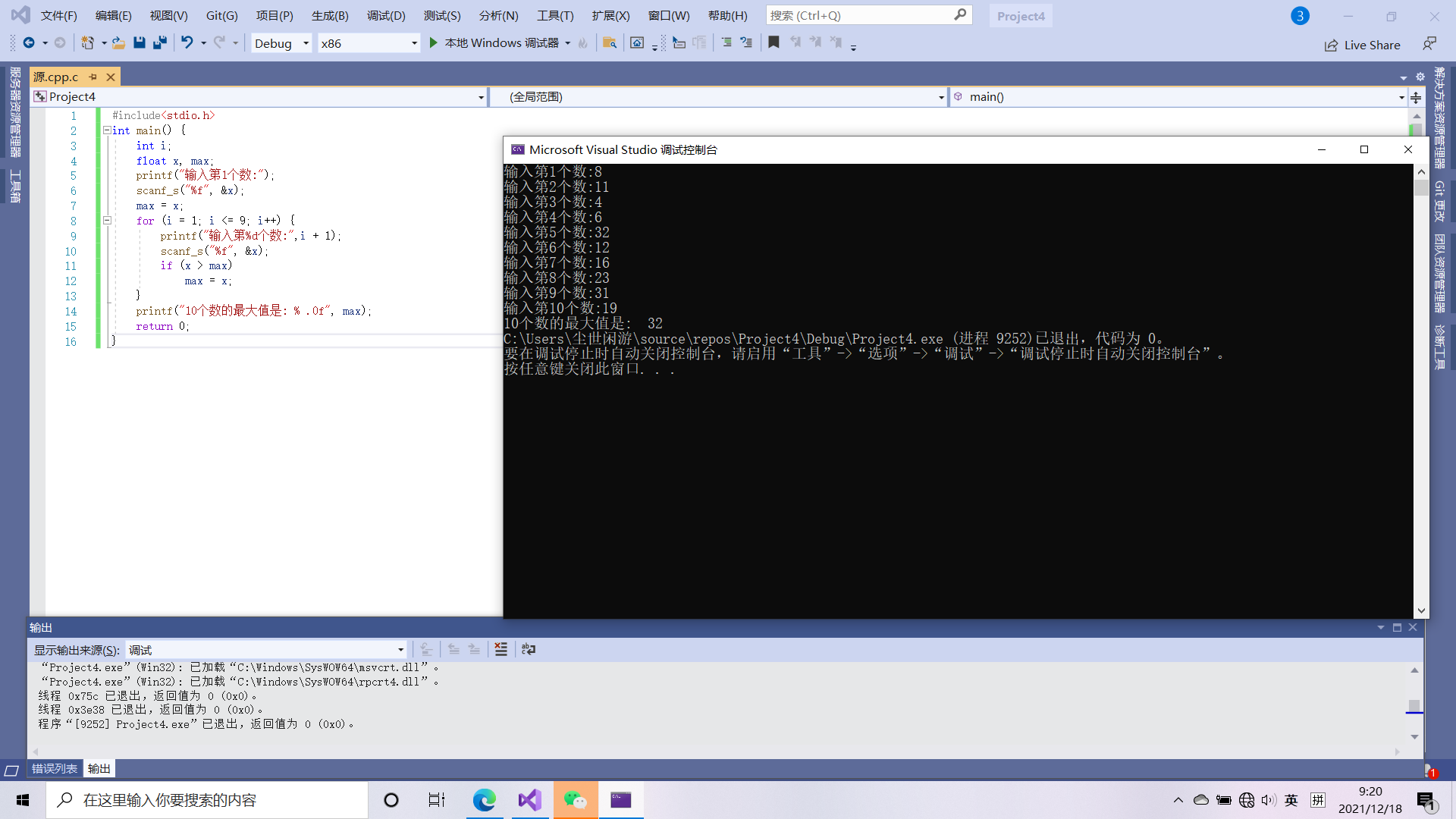 编写程序,输入10个数,输出其中最大数
