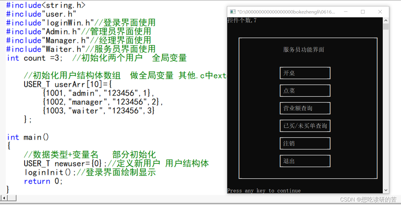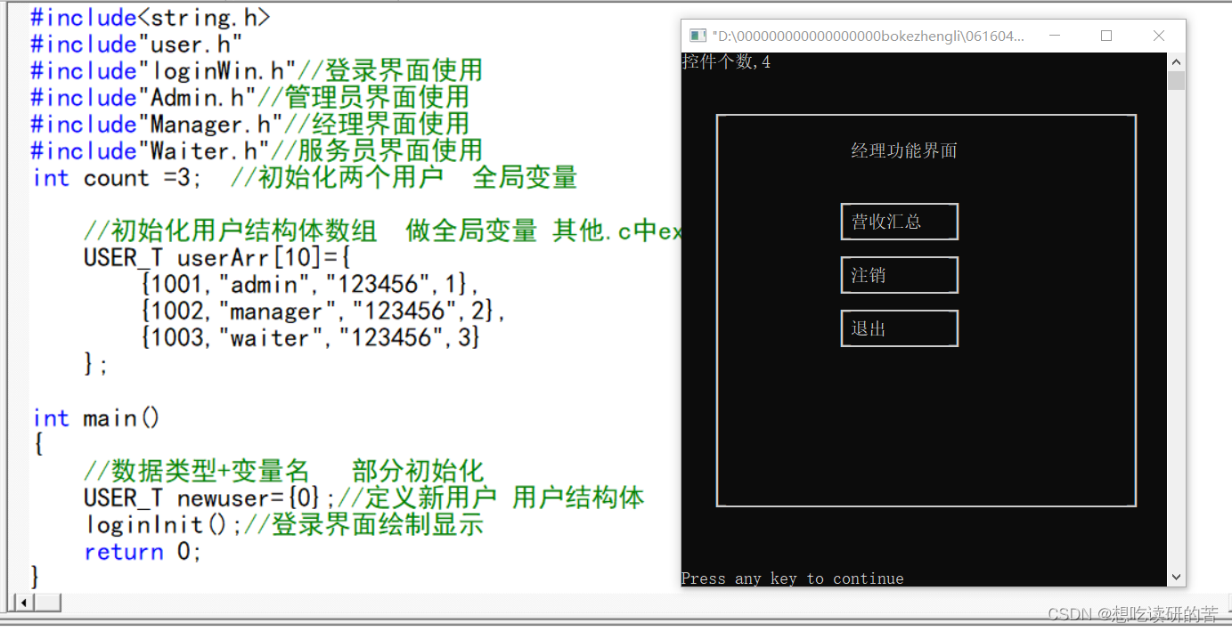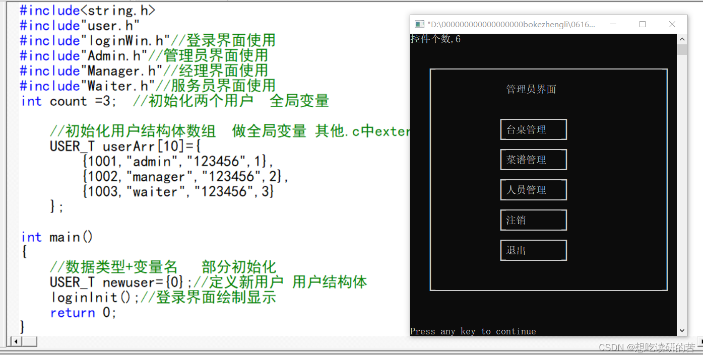 以上就是欣喜小霸王最近收集整理的关于【C语言】 实现登录后跳转不同的角色界面效果展示源码分享 的全部内容,更多相关【C语言】内容请搜索靠谱客的其他文章。
