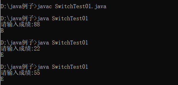 System.out.print("请输入成绩:");