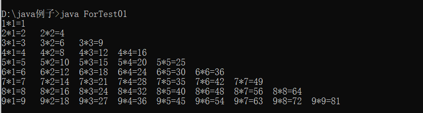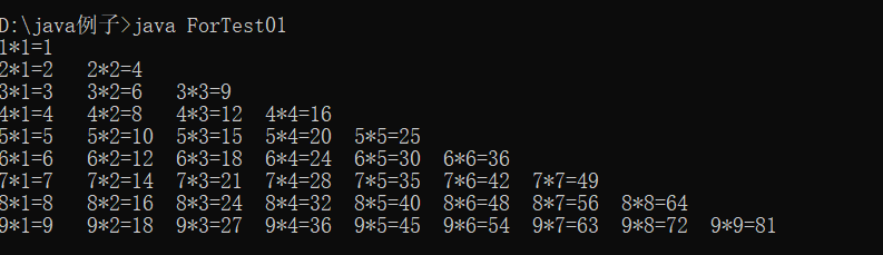 下面是关于for循环的一个例子:九九乘法表