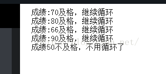 document.write("成绩:"+mynum[i]+"及格,继续循环"+"<br>");