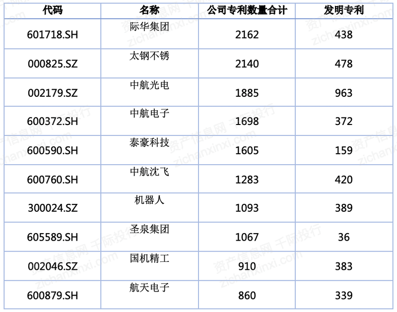 表 国内专利排名前十航空航天公司(截至2022年7月20日)