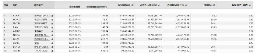 (3) 诺斯罗普·格鲁门[NOC.N]:诺斯罗普·格鲁门公司最初成立于1939年在加利福尼亚州霍桑市成立,当时是诺斯罗普飞机公司,1985年在特拉华州重新注册为诺斯罗普公司。诺斯罗普飞机公司是飞翼技术的主要开发者,包括B-2隐形轰炸机。通过一系列收购以及有机增长,公司发展成为世界上最大的国防承包商之一。
