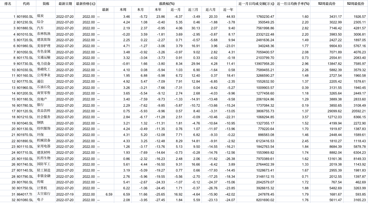 图 截至2022年7月20日,太空旅行指数和申万一级行业指数对比