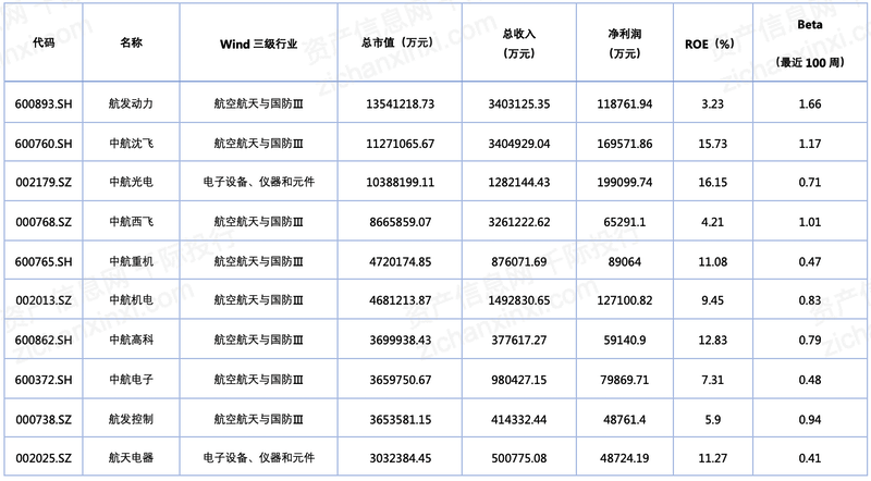 (2) 中航沈飞[600760.SH]:中航沈飞股份有限公司主营业务为航空产品制造,主要产品包括航空防务装备和民用航空产品,核心产品为航空防务装备。公司是集科研、生产、试验、试飞为一体的大型现代化飞机制造企业,是我国航空防务装备的主要研制基地,在航空防务装备领域具有较强的核心竞争力和领先的行业地位。