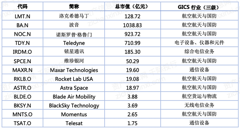 全球非中国企业有洛克希德马丁[LMT.N]、波音[BA.N]、诺斯罗普·格鲁门[NOC.N]、Teledyne[TDY.N]、铱星通讯[IRDM.O]等。