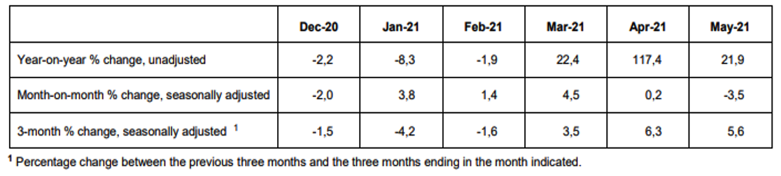 截至2021年5月的三个月内,经季节性调整的有效载荷与前一个月相比增加了6,0%。