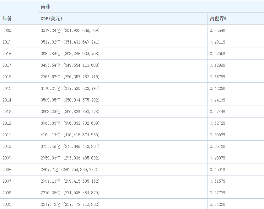 尽管如此,进入21世纪还不到十年,包括南非在内的许多国家都经历了全球经济危机,这影响了南非过去四年的经济增长,导致经济增长速度减速。